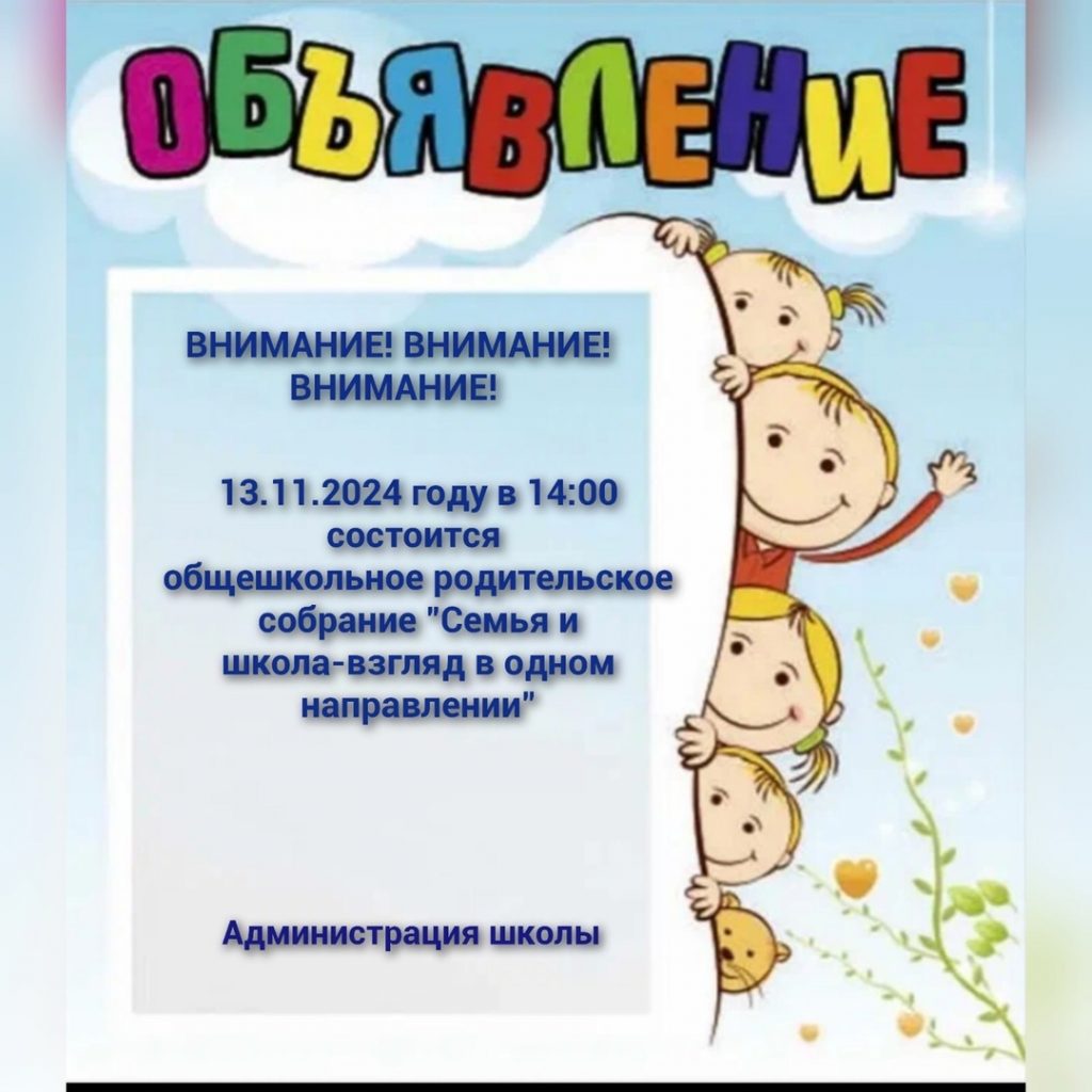 Приглашаем Вас на общешкольное родительское собрание, которое состоится 13 ноября 2024 года (среда)