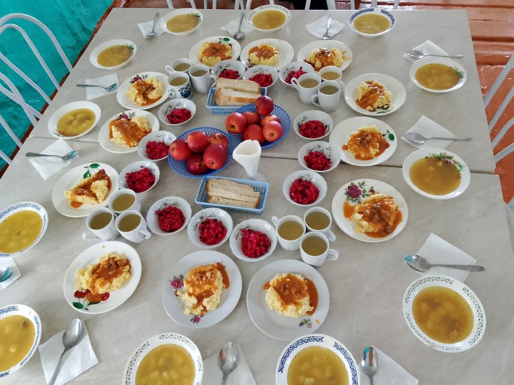 Всегда вкусно приготовленные завтраки и обеды, щедрые порции, разнообразное меню. Регулярно проводится витаминизация, в рационе питания присутствуют свежие овощи и фрукты. Строго соблюдаются санитарно — гигиенические нормы. Работники пищеблока всегда обходительны, доброжелательны, приветливы. Шеф- повар Ондар Шончалай Байыртыевна, помповар Монгуш Ужар Геннадьевна!